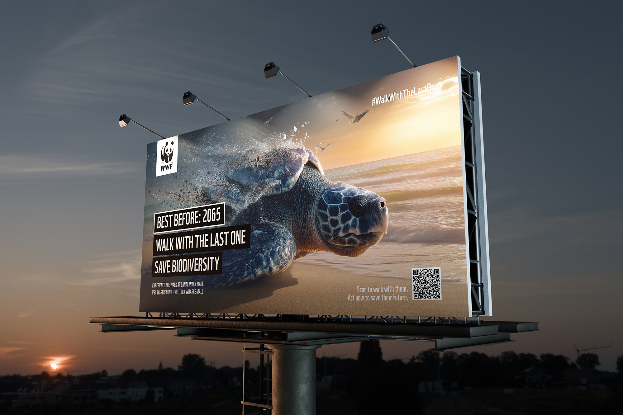 People have to experience climate change to realize its dangers, which gives them an emotional connection with the initiative. The concept, Walks with the Last One, is an ambient outdoor installation that brings the climate change experience to life using augmented reality and 3D Hologram technology to connect the audience with these precious animals. The magic is in the audience getting to walk with the hologram animals, and then, at a certain distance, the animals fade away, leaving a sense of absence to the target audience. The ambient activation will be supported with bold campaign messaging and a call to action asking people to take action against the disappearance of our biodiversity due to climate change. The installations will be in three cities, namely Johannesburg, Cape Town, and Pretoria. The campaign will be run in shopping malls in these cities. Apart from 3D Hologram technology being affected by the initiative, people can also scan the QR code on the campaign material and experience the timeline until 2065, hence educating the public on the dangers of climate change if action is not taken.